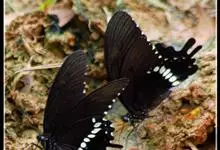 玉斑凤蝶Papilio helenus 别名白纹凤蝶,是凤蝶科凤蝶属美凤蝶亚属大型种类。雌雄同型;体翅皆黑色,后翅正面中室外有3个并列的白色斑,亚外缘有1列模糊的新月形红色斑,…全部>>