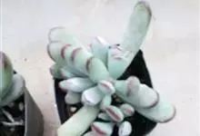 福娘为景天科银波锦属的肉质草本植物。对生的叶片呈短棒状,叶色灰绿,表覆白粉,叶缘外围镶着紫红色,叶片外形多有变化有短圆形、厚厚的方形等不同叶形;花期夏秋。福娘原产于非洲西南部的纳米比亚,…全部>>