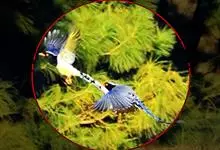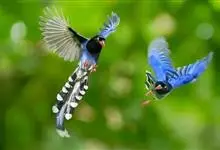 台湾蓝鹊:体长64至65厘米,翼展18至21厘米,尾长约40厘米,尾羽长占了总体长的三分之二。头、脸、颈、喉、胸都是黑色,黄色的眼珠包围黑色的瞳孔,鲜红色的鸟喙、双脚,…全部>>