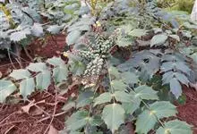 阔叶十大功劳 Carr. )是小檗科,十大功劳属常绿灌木或小乔木,高可达2米。叶长圆形,上面深绿色,叶脉显著,背面淡黄绿色,网脉隆起,小叶无柄,基部一对小叶倒卵状长圆形,总状花序簇生,…全部>>