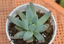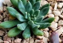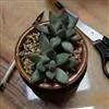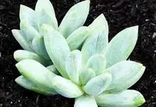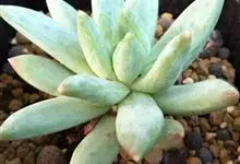 蓝黛莲是一种景天科厚叶草属植物。叶片呈略扁的圆柱形,排列成莲座状;颜色为灰绿色,表面覆盖的天然霜粉使其增添了些许灰蓝色的淡雅色调,阳光晒后叶尖变为红色。…全部>>