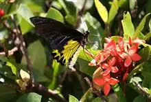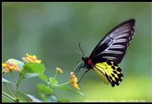 金裳凤蝶是凤蝶科、裳凤蝶属的动物。金裳凤蝶身体呈黑色,头、颈和胸侧有红毛,腹部有黑黄两色相间条纹,雄蝶前翅黑色,具黑天鹅绒光泽,各脉两侧灰白色,后翅金黄色,各室外缘有等腰三角形黑斑1枚,斑内侧有晕,…全部>>