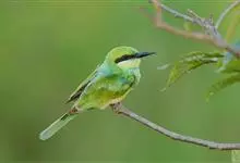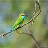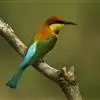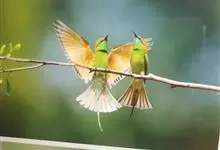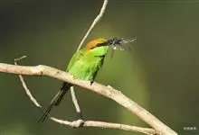 绿喉蜂虎是佛法僧目、蜂虎科的小型鸟类,共有9个亚种。身长22-25厘米,翼展29-30厘米,体重15-20克。喉绿色,额部、头顶至上背为锈红色,其余上体均为亮绿色。中央尾羽延长且端段狭细,…全部>>