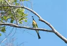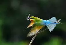 蓝颊蜂虎:是蜂虎科、蜂虎属的鸟类,共有2个亚种。体长27-33厘米,翼展46-49厘米,体重38-50克。嘴形细长而下弯,先端尖,…全部>>