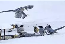 喜鹊:是鸦科、鹊属的一种鸟类。共有11个亚种。体长40-50厘米,雌雄羽色相似,头、颈、背至尾均为黑色,并自前往后分别呈现紫色、绿蓝色、绿色等光泽,双翅黑色而在翼肩有一大形白斑,尾远较翅长,呈楔形,…全部>>