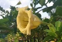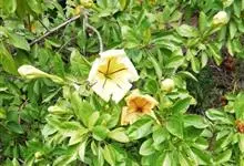 金杯藤 P.S. Green)是茄科、金杯藤属多年生常绿大型藤本。茎及枝条粗壮。叶片互生。长椭圆形。先端突尖。叶面有光泽。全株具有毒乳汁。花顶生,单朵或数朵,花苞棒槌状。从绿色转变为淡黄色。…全部>>
