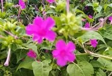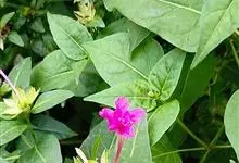 即紫茉莉,英文名:Four-o'clock,Marvel of Peru,为紫茉莉科、紫茉莉属多年生草本植物,一年生栽培。株高50~80cm。根粗壮,茎多分枝而散生。叶对生,卵形或心脏形。花数朵簇生…全部>>