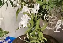 素馨花,木犀科素馨属多年生的攀援灌木植物。攀援灌木,小枝圆柱形,具棱或沟;叶对生,叶轴常具窄翼,小叶片卵形或长卵形;聚伞花序顶生或腋生,花序梗长,苞片线形,花萼无毛,裂片锥状线形,花冠白色,…全部>>