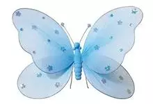 天堂凤蝶翅展可达105mm。前、后翅自基角至后缘约1/2~2/3端为纯净的宝蓝色,后角至后缘1/3~1/2端为黑色,后翅有黑色的尾突。翅背面为棕褐色。全部>>