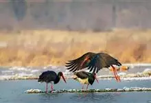 黑鹳是鹳形目鹳科鹳属鸟类,俗称乌鹳、钢鹳、老鹤。黑鹳头、颈和脊均呈黑褐色,故名黑鹳。黑鹳上体羽黑色、并带有绿紫色金属光泽,胸腹部羽白色;嘴、腿均红色;两性相似;成鸟嘴长而直,基部较粗,…全部>>