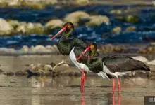白鹳,是鹳形目鹳科鹳属鸟类。白鹳曾确定为3个亚种:指名亚种、中亚亚种和东方亚种。其体长约111厘米。嘴形直、粗厚而侧扁;体羽除飞羽黑色具铜绿色金属光泽外,余部均为白色;眼周裸区、脚、趾红色,嘴黑色。…全部>>