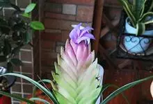 紫花凤梨,是凤梨科铁兰属的多年生草本植物。株高不及30厘米;叶片拱状线形,叶丛族生于短缩茎上,斜出或横生,叶为绿色,基部具有紫褐色彩晕;短穗状花序,总苞片粉红色,呈扇形;小花青紫色,…全部>>