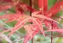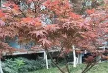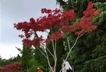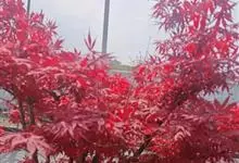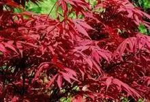 红枫,园艺种,槭树科槭属落叶小乔木,高5~8 m;树冠伞形,枝条开张,细弱。单叶对生,近圆形,薄纸质,掌状7~9深裂,裂深常为全叶片的1/2~1/3,基部心形,裂片卵状长椭圆形至披针形,先端尖,…全部>>