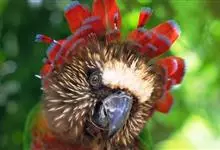 鹰头鹦鹉:鹰头鹦鹉体长35厘米,体重190-277克。额头和顶冠具柔和的白色,眼先深褐色,枕部和头部两侧有棕色羽毛,并具有柔软的白色条纹, 后颈有长长的暗红色羽毛并镶有蓝边,有2个亚种,是典型的攀禽,…全部>>