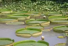 王莲:是睡莲科王莲属植物统称。多年生或一年生大型浮叶草本,有直立的根状短茎和发达的不定须根,白色。拥有巨型奇特似盘的叶片,浮于水面,十分壮观,并以它娇容多变的花色和浓厚的香味闻名于世。夏季开花,单生,…全部>>