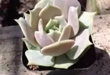 露娜莲是景天科拟石莲花属的多肉植物,由丽娜莲和静夜杂交而来。培育者为美国加利福尼亚州的育种师Dick Wright。灰绿色的叶片排列紧密,轮廓精致优雅,在阳光充足的环境下会呈现出优雅的藕荷色,…全部>>