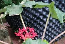 变叶珊瑚花,是大戟科麻风树属常绿灌木。变叶珊瑚花单叶互生,倒阔披针形,叶面为浓绿色,叶背为紫绿色,叶柄具茸毛,叶面平滑,常丛生于枝条顶端;花单性,雌雄同株,花冠红色或粉红色,雌、雄花不同时开放;具乳汁,…全部>>