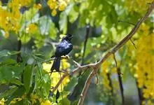 大盘尾:是雀形目卷尾科的鸟类,共有13个亚种。外形和小盘尾相似,但体型较大,体长约33厘米,加上延长的尾羽,可达66厘米。通体黑色,额部羽簇长而卷曲,形成直立向上的羽冠。尾叉状,…全部>>