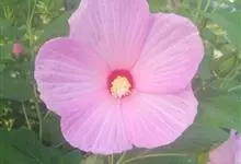 芙蓉葵是锦葵科木槿属植物,又名草芙蓉、大花秋葵,原产于北美。落叶灌木状。叶大、广卵形,叶柄、叶背密生灰色星状毛。花大,单生于叶腋,有白、粉、红、紫等色。喜阳、略耐阴,宜温暖湿润气候,忌干旱,耐水湿,…全部>>