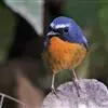 棕胸蓝姬鹟:属小型鸣禽,体长10-13厘米,体重6-10克,是一种体型很小的灰蓝及棕色鹟,雌雄羽色不同,雄鸟羽色艳丽,雌鸟羽色暗淡。雄鸟上体深蓝色,胸橙黄色,下腹灰白色。亚成鸟具褐色斑驳。…全部>>