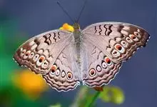 美眼蛱蝶为鳞翅目、蛱蝶科、眼蛱蝶属节肢动物。除西北外,全国各地均有分布,国外分布于日本及东南亚。幼虫以马鞭草科的过江藤、车前草科的车前草等为食。全部>>