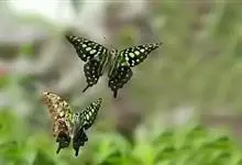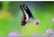 青带凤蝶Graphium sarpedon ,又名青凤蝶,是最普遍的中型凤蝶,飞行速度很快。青带凤蝶的翅膀中央有许多浅蓝色的斑点,很整齐地排列成一条直线。这些斑点由上而下逐渐变大,就像一条青色的带子。全部>>