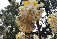 结香是瑞香科结香属落叶灌木。又名岩泽兰、三桠皮、三叉树、蒙花、山棉皮等。高约0.7-1.5米,小枝粗壮,褐色,常作三叉分枝,幼枝常被短柔毛;叶在花前凋落,长圆形,披针形至倒披针形,先端短尖,…全部>>