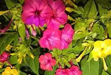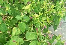 即紫茉莉,英文名:Four-o'clock,Marvel of Peru,为紫茉莉科、紫茉莉属多年生草本植物,一年生栽培。株高50~80cm。根粗壮,茎多分枝而散生。叶对生,卵形或心脏形。花数朵簇生…全部>>