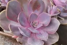 紫珍珠是景天科石莲花属的多年生肉质草本植物。植株中小型;叶片肉质,匙形,呈莲座状紧密排列;叶片粉紫色,叶缘呈粉白色,光照充足时颜色亮丽,不足时叶色会呈现深绿色或灰绿色,叶面光滑,被轻微白粉,…全部>>