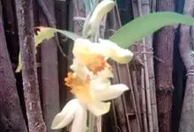 翅萼石斛是兰科石斛属的植物。茎肉质状粗厚,不分枝,干后为金黄色;叶革质,呈长圆形或舌状长圆形;总状花序出自近茎端,花苞片卵形,子房黄绿色,呈三棱形,花有橘子香气,萼囊淡黄色带橘红色,呈角状,花瓣为白色,…全部>>
