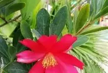滇山茶:灌木至小乔木,有时高达15米,嫩枝无毛。叶阔椭圆形,上面干后深绿色,发亮,下面深褐色,无毛,侧脉6-7对,边缘有细锯齿。花顶生,红色,直径10厘米,无柄;苞片及萼片10-11片,花瓣红色,…全部>>
