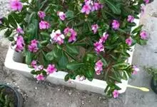 四季梅,又称 日日春、日日新、日春花、长春花、四时春、五瓣梅、雁来红、天天开等。四季不枯萎。夹竹桃科长春花属植物,常绿直立亚灌木。株高30-60厘米,叶对生,长椭圆形,深绿具光泽。花腋生,花冠高脚碟…全部>>