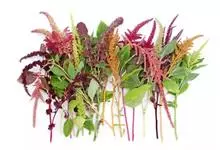 千穗谷一年生草本;茎绿色或紫红色,分枝,无毛或上部微有柔毛。叶片菱状卵形或矩圆状披针形,具凸尖,基部楔形,无毛,上面常带紫色;叶柄无毛。圆锥花序顶生,直立,圆柱形,不分枝或分枝,由多数穗状花序形成,…全部>>