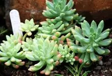 乙女心是景天科景天属的多肉植物,原产墨西哥。多年生亚灌木,茎叶肉质,株高5-30厘米。叶片簇生于茎顶,圆柱状,淡绿色或淡灰蓝色,叶先端具红色,叶长3~4厘米。花小,黄色。春秋为生长季,…全部>>