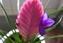 紫花凤梨,是凤梨科铁兰属的多年生草本植物。株高不及30厘米;叶片拱状线形,叶丛族生于短缩茎上,斜出或横生,叶为绿色,基部具有紫褐色彩晕;短穗状花序,总苞片粉红色,呈扇形;小花青紫色,…全部>>