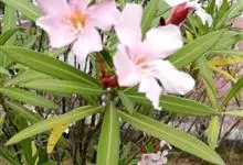夹竹桃,又名红花夹竹桃、欧洲夹竹桃,是夹竹桃科夹竹桃属的一种常绿直立大灌木,枝条灰绿色,含水液。叶披针形,3叶轮生。聚伞花序顶生,花冠粉红至深红色,花冠漏斗状,有特殊香味。蓇葖果,圆柱形。种子长圆形,…全部>>