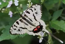 曙凤蝶是凤蝶科、曙凤蝶属蝴蝶。体背黑色,头、颈、胸侧及腹侧具红色鳞毛。雌、雄异型。雄蝶翅黑绒色,后翅的臀缘褶很大,反卷且具灰白色体毛的性标。雌蝶前翅大部及后翅色淡,…全部>>