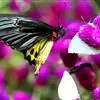 金裳凤蝶是凤蝶科、裳凤蝶属的动物。金裳凤蝶身体呈黑色,头、颈和胸侧有红毛,腹部有黑黄两色相间条纹,雄蝶前翅黑色,具黑天鹅绒光泽,各脉两侧灰白色,后翅金黄色,各室外缘有等腰三角形黑斑1枚,斑内侧有晕,…全部>>