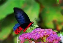 曙凤蝶是凤蝶科、曙凤蝶属蝴蝶。体背黑色,头、颈、胸侧及腹侧具红色鳞毛。雌、雄异型。雄蝶翅黑绒色,后翅的臀缘褶很大,反卷且具灰白色体毛的性标。雌蝶前翅大部及后翅色淡,…全部>>