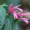 红唇花)是一种爵床科,虾衣花属植物,常绿蔓状半灌木。因长得很像嘴唇而得名。原产巴西东部,花序生长在叶腋处,能呈现再枝条上成串开花的景象。开花期全年,桃红色的花朵,…全部>>