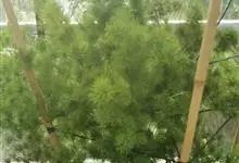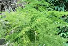蓬莱松是天门冬科、天门冬属多年生丛生草本植物。宿存,圆柱形肉质根,纵截面为绿色和表面灰色。植株高可达3米。茎呈圆柱形或近四边形,底部木质化,具有灰色或灰褐色。幼嫩的茎在每个节上都被紫绿色鳞片包,…全部>>