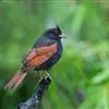 凤头鹀:属小型鸣禽,体重21-31克,体长134-175毫米。以头顶的细长羽冠为特征,雄鸟全身几乎均为黑色具蓝色光泽,两翅和尾以及尾上覆羽栗红色。雌鸟具短的褐色羽冠,上体暗橄榄褐色,…全部>>
