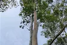 柠檬桉,又名“油加利树”“尤加利树”,是桃金娘科、桉属的常绿大乔木。树高28m,树皮光滑;幼态叶片披针形,有腺毛,基部圆形,叶柄盾状着生,成熟叶片狭披针形;圆锥花序腋生,花蕾长倒卵形;蒴果壶形,…全部>>