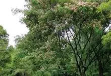 阔荚合欢 Benth.)是豆科合欢属植物,高8-12米;树皮粗糙;嫩枝密被短柔毛,老枝无毛。二回羽状复叶;总叶柄近基部及叶轴上羽片着生处均有腺体。头状花序花时直径3-4厘米;总花梗通常长7-9厘米。…全部>>