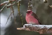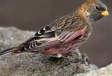 粉红腹岭雀:为燕雀科岭雀属的鸟类。体重25-34克,体长150-182毫米。是一种中等体型的深色岭雀。两翼及下体玫红色。东北亚种的雄鸟额、顶冠及脸灰;上背黄褐;上体深褐,…全部>>