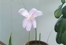 小韭兰学名韭菜莲又名风雨花、菖蒲莲、红玉帘和旱水仙,多年生草本,鳞茎卵球形,基生叶常数枚簇生,线形,扁平,花单生于花茎顶端,下有佛焰苞状总苞,花玫瑰红色或粉红色,蒴果近球形,种子黑色,花期夏秋。韭莲…全部>>