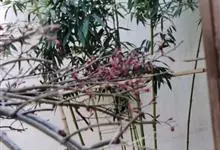 南天竹,小檗科南天竹属常绿小灌木植物,茎干较高,表面光滑无毛,红色;叶较小,叶片薄,呈椭圆形且为深绿色,无毛;花朵较小,白色带有芳香,呈四角形;果柄短且果实呈球形,橙红色;种子扁圆形。花期3-6月,…全部>>