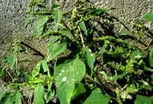 反枝苋是苋科苋属的一年生草本植物。株高达1米;茎密被柔毛;叶菱状卵形或椭圆状卵形,先端锐尖或尖凹,两面及边缘被柔毛,下面毛较密;穗状圆锥花序,顶生花穗较侧生者长;花被片长圆形或长圆状倒卵形,…全部>>