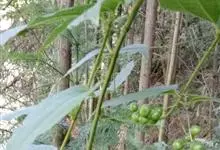 牛尾菜是菝葜科菝葜属多年生草质藤本。具根状茎;茎中空,干后凹瘪,具槽,无刺;叶较厚,卵形、椭圆形至长圆状披针形,背面绿色,无毛。伞形花序有花多朵,总花梗纤细。浆果球形,直径7-9毫米,成熟时黑色。…全部>>