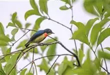 红胸啄花鸟:体重5-10克,体长60-92毫米。体形纤小。雄鸟上体呈辉亮的金属绿色;下体棕黄,胸部具一朱红色块斑,极易与其他啄花鸟区别。雌鸟上体呈橄榄绿,下体棕黄色。虹膜褐色,嘴褐黑色或角灰色,…全部>>